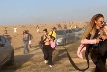 Hundreds of people attending the funeral of a British-born 20-year-old soldier killed by Hamas were forced to duck for cover during the service. Nathanel Young,…