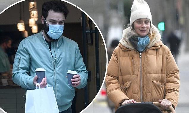 EXCLUSIVE: Aidan Turner’s wife Caitlin Fitzgerald has been spotted pushing a pram in London (left), days after the Poldark star was seen grabbing coffee in London