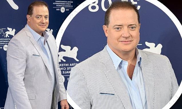 Brendan Fraser cuts a suave figure in pinstripe suit as he attends photocall for The Whale at Venice Film Festival after movie ‘received 8 minute standing ovation’ at its premiere