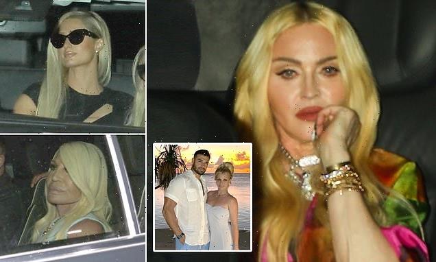 Madonna, Paris Hilton and Donatella Versace led the celebrity guests heading home after Britney Spears’ wedding to her partner of five years, Sam Asghari at her Thousand Oaks home on Thursday evening.