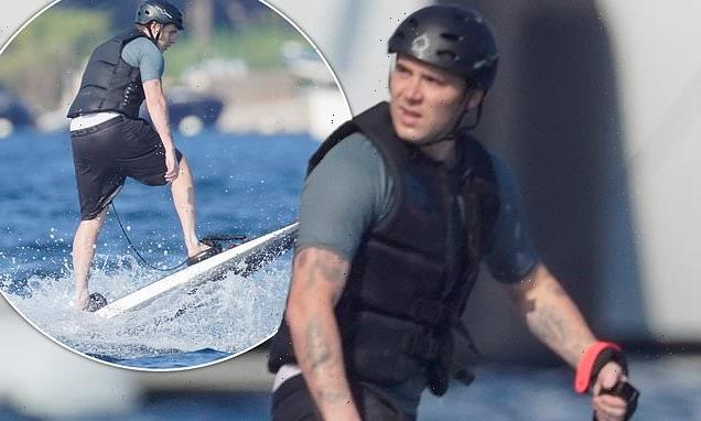Brooklyn Beckham dons black swimming shorts and a lifejacket while enjoying solo water sports during lavish St. Tropez honeymoon