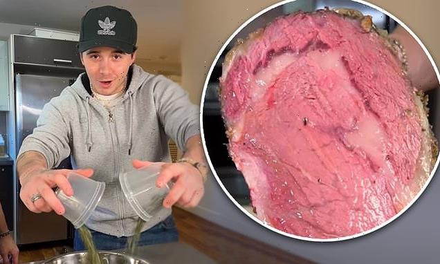 ‘Might as well bite the cow while it’s grazing!’: Brooklyn Beckham gets a roasting over ‘raw’ beef in tutorial on how to make a traditional Sunday dinner ‘Michelin style’