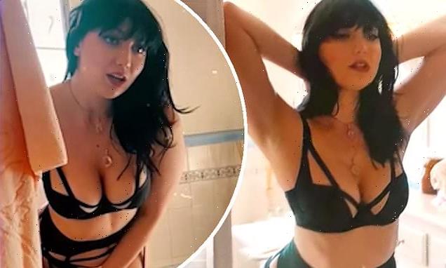Daisy Lowe showcases her incredible curves in daring black underwear and suspenders as she makes her sizzling debut on TikTok