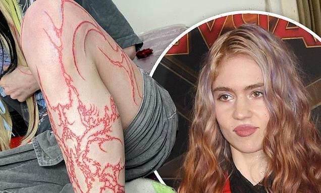 Elon Musk’s ex-girlfriend Grimes reveals she got a MASSIVE red tattoo running all the way up her leg… after she admitted wanting ‘elf ear’ surgery