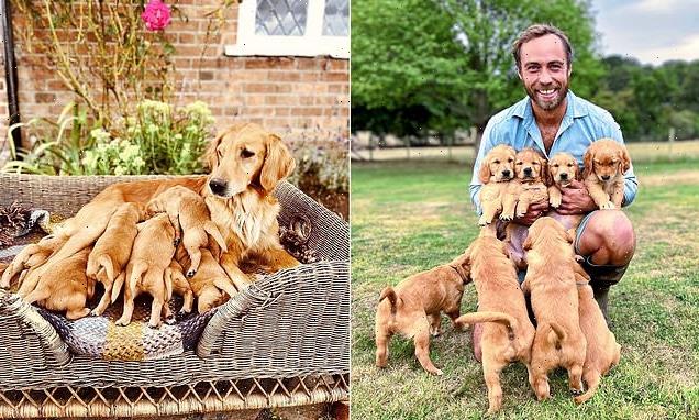 With six dogs at their Berkshire home, James Middleton and wife Alizee have a lot of hungry hounds to feed – and now the arrival of eight puppies from golden retriever Mabel adds to the chaos.