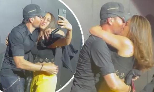 ‘I’m sure your wife isn’t going to be happy!’: Enrique Iglesias raises eyebrows as he shares video kissing an overeager fan in Las Vegas – despite being married to Anna Kournikova