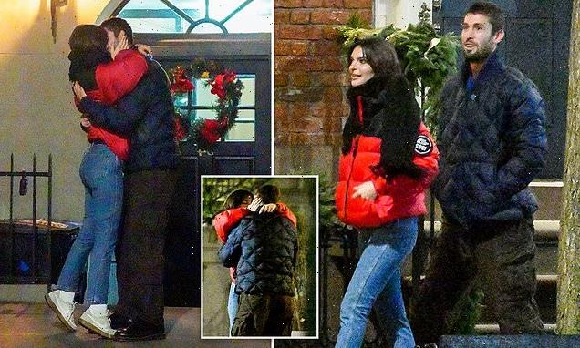 The stunner looked giddy as she chatted with the New York based artist before they both reached in for a kiss – with their arms wrapping around each other.