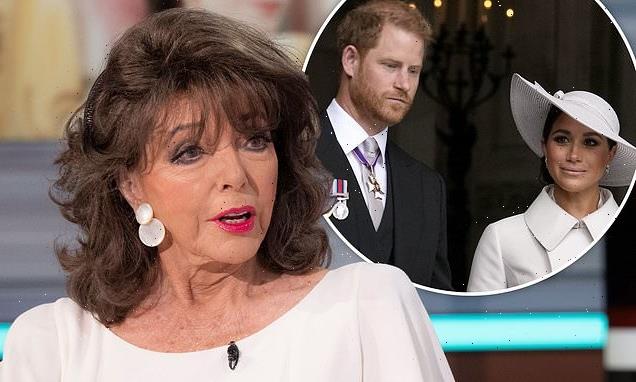 Shady: Dame Joan Collins has commented on the Duke and Duchess of Sussex ahead of their first appearance in the UK since the Platinum Jubilee, asking if we need to give them ‘oxygen’