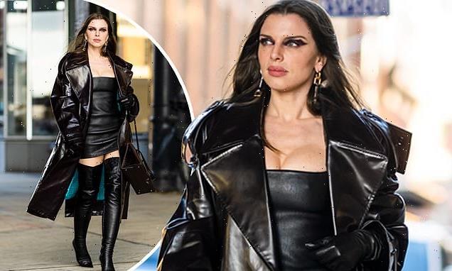 Julia Fox struts down New York City streets in an edgy vinyl trench coat and thigh-high boots… after returning from a whirlwind Milan Fashion Week trip