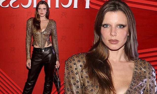 Julia Fox sizzles in a busty brown leather top at the Canelo vs. GGG Hennessy V.S.O.P cocktail party in Las Vegas… after insisting SHE split from ex Kanye West