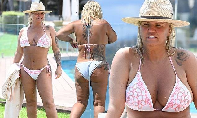 PICTURE EXCLUSIVE: Kerry Katona shows off her 2.5 stone weight loss in a skimpy white bikini as she puts on a PDA with fiancé Ryan Maloney in Spain