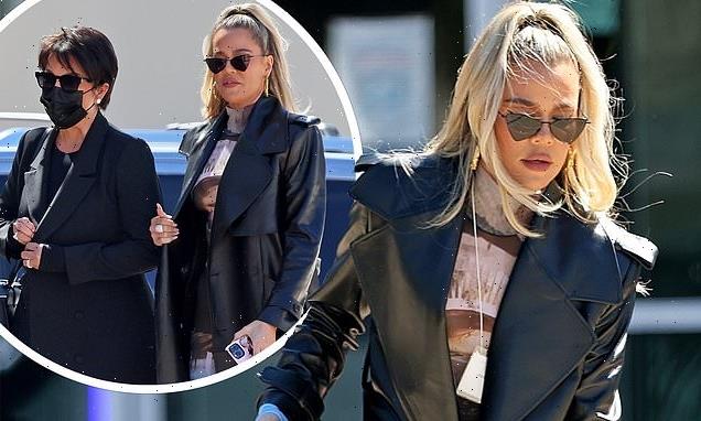 EXCLUSIVE: Khloe Kardashian channels The Matrix in leather trench coat and boots with tiny sunglasses as she heads to business meeting in LA with momager Kris Jenner