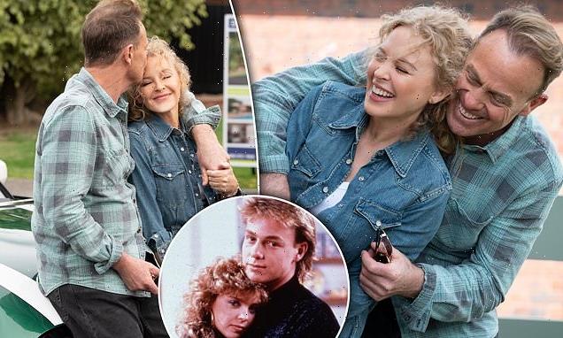 Now we’re back together’: Kylie Minogue brings back the curls as she cosies up to her on and former off screen lover Jason Donovan to film scenes for the final episode of Neighbours