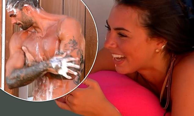 In the teaser clip for Love Island’s upcoming episode, Paige glances over at a drenched Adam as he takes an outdoor shower.