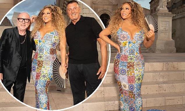 Mariah Carey shows off famous curves and cleavage in skintight couture at Dolce & Gabbana Alta Moda fashion show in Siracusa, Italy