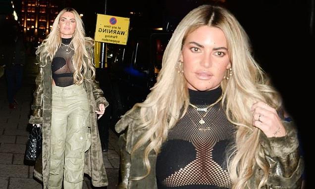 Megan Barton-Hanson struts her stuff in a busty fishnet sheer bodysuit and green cargo trousers after enjoying a lavish dinner out at Mayfair restaurant