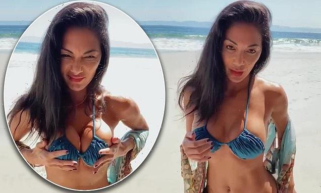 Nicole Scherzinger, 43, sets pulses racing in a TINY blue bikini as she shows off her sexy dance moves on the beach in Mexico