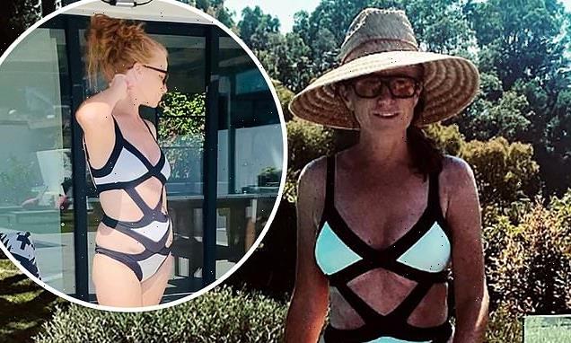Patsy Palmer, 50, displays her VERY bronzed physique in a neon blue swimsuit as she relaxes by the pool in sunny Malibu – after asking fans to PAY for ‘exclusive’ Instagram content