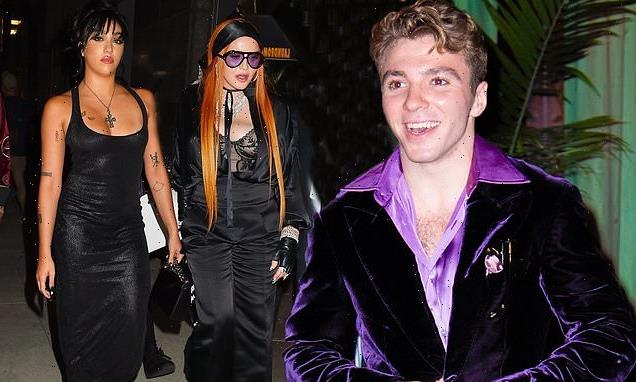 Smiling Rocco Ritchie, 22, wears bold purple velvet suit to join his mother Madonna, 64, and sister Lourdes, 25, for dinner at Carbone after attending Tom Ford’s New York fashion show