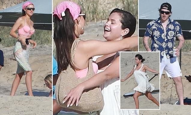 EXCLUSIVE: Throuple goals! Selena Gomez shares a warm hug with BFF Nicola Peltz during beach day with star’s husband Brooklyn Beckham in Mexico – as trio’s friendship goes from strength-to-strength