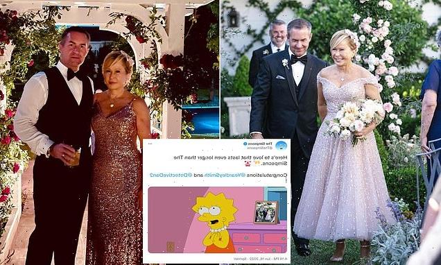 ‘Sometimes life is great like the movies’: Twice-divorced Simpsons star Yeardley Smith, 58, marries police detective she fell for after he was assigned to protect her in a real-life Bodyguard-style love story