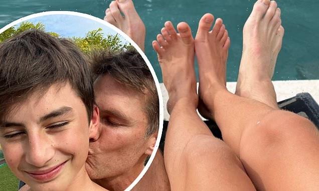 ‘Love this boy’: Tom Brady kisses son Ben, 13, while they lounge by a pool… after celebrating his first Christmas as a single man post Gisele divorce