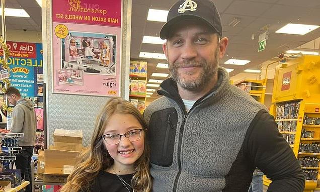 ‘She was over the moon!’ Tom Hardy delights young fan, 13, as he poses for a sweet photo with her after being spotted in a Teeside toy store on Christmas Eve