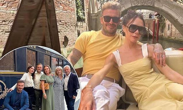 ‘Family time is so precious!’ Victoria Beckham and husband David enjoy a lavish ride on the Orient Express before boarding a gondola as they join her parents for a European getaway