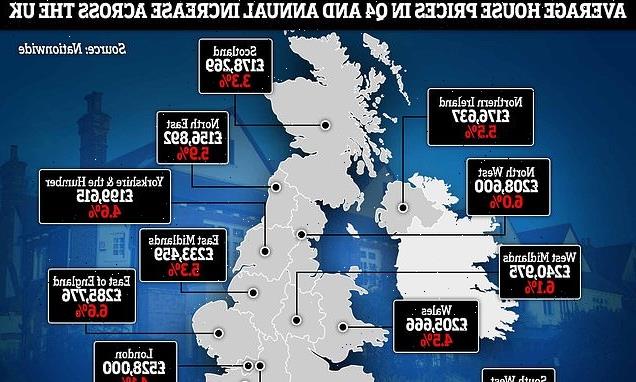 Data today also revealed the towns and cities with the strongest house price growth saw average property values rise by more than £50,000 in the past year.