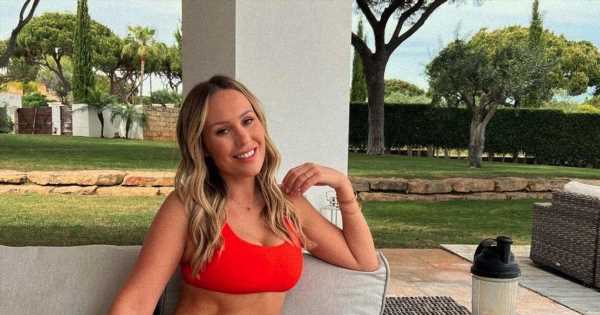 The mum-of-one looked stunning as she posed in a neon green bikini and a white sunhat, before taking part in a gruelling workout.