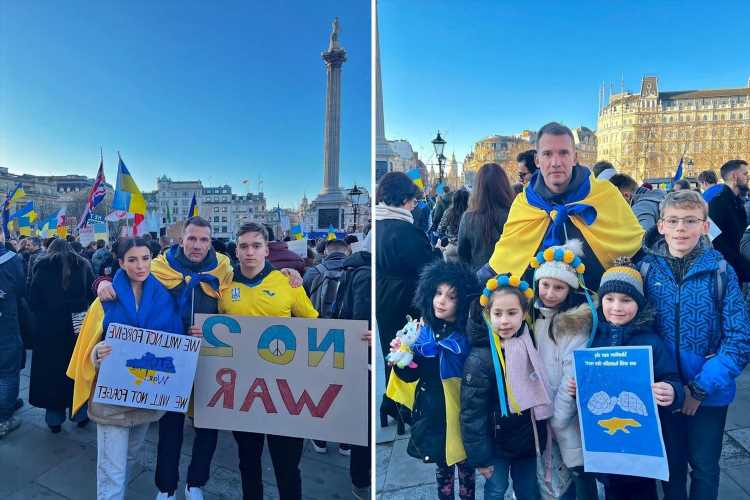 UKRAINE legend Andriy Shevchenko joined London-based protests over Russia's invasion of his country on Sunday.