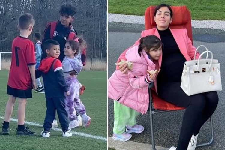 GEORGINA RODRIGUEZ rocked a £22,000 handbag as she watched Cristiano Ronaldo Jr score for Manchester United's U12s yesterday.