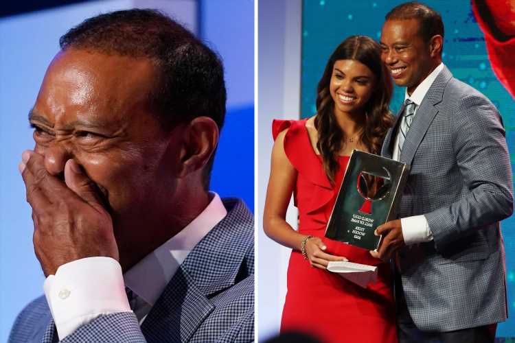 TIGER WOODS broke down in tears after being inducted into the World Golf Hall of Fame by his daughter Sam.