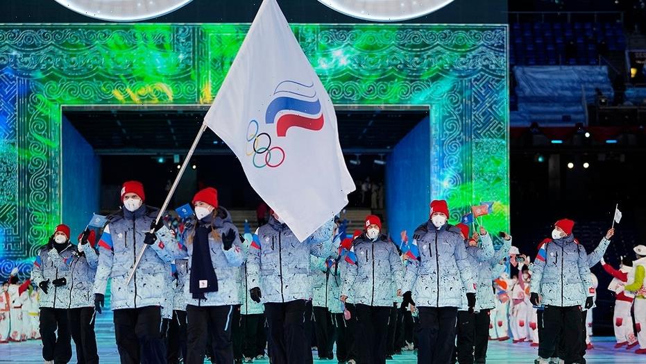 Athletes from Russian Olympic Committee arrive during the opening ceremony of the 2022 Winter Olympics, Friday, Feb. 4, 2022, in Beijing.