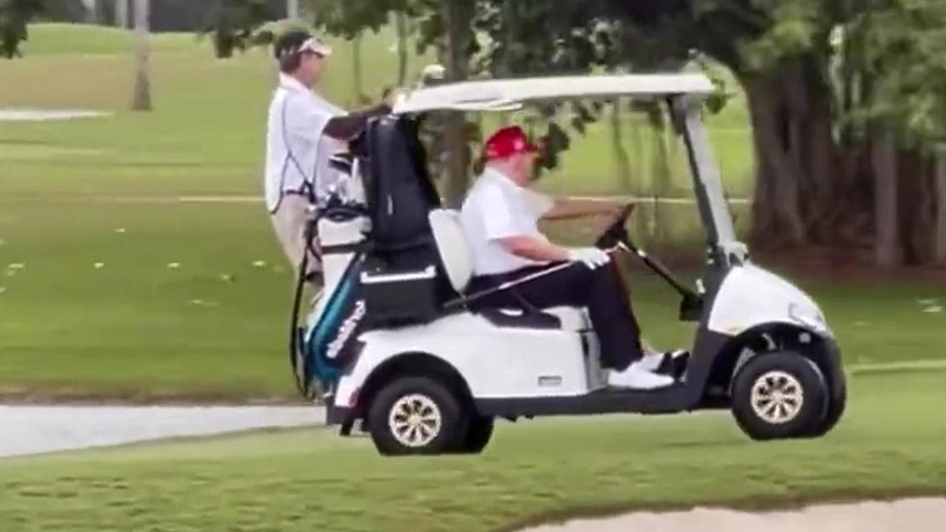 GOLF fans have been left stunned after a video of Donald Trump appearing to drive his buggy on the green went viral on social media.