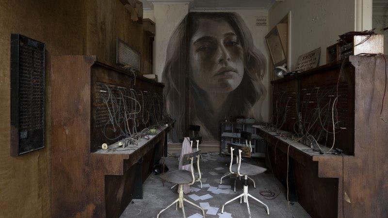 Through an unmarked doorway and up past walls of peeling paint, under cracked ceilings within the heart of Flinders Street Station, lies an exhibition by the artist Rone.