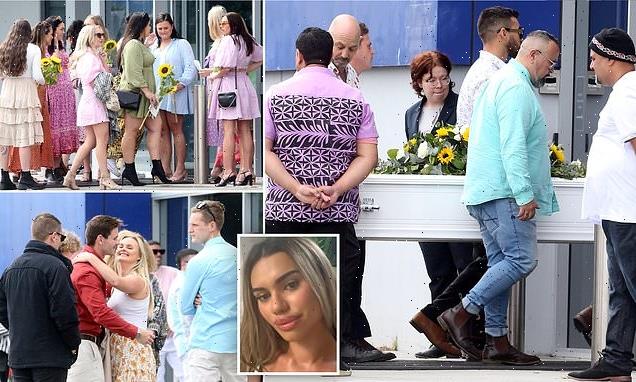 Ms Cowley’s family asked mourners to wear bright colours while some were seen carrying sunflowers so they could celebrate the life of the 24-year-old