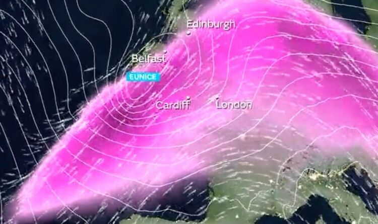 The Met Office has warned of a danger to life from Storm Eunice which is due to hit the South-west of England and South Wales from Friday morning. A combination of high tides, strong winds up to 100mph and storm surge led the UK’s national weather service to issue a rare, red weather alert – the highest possible.