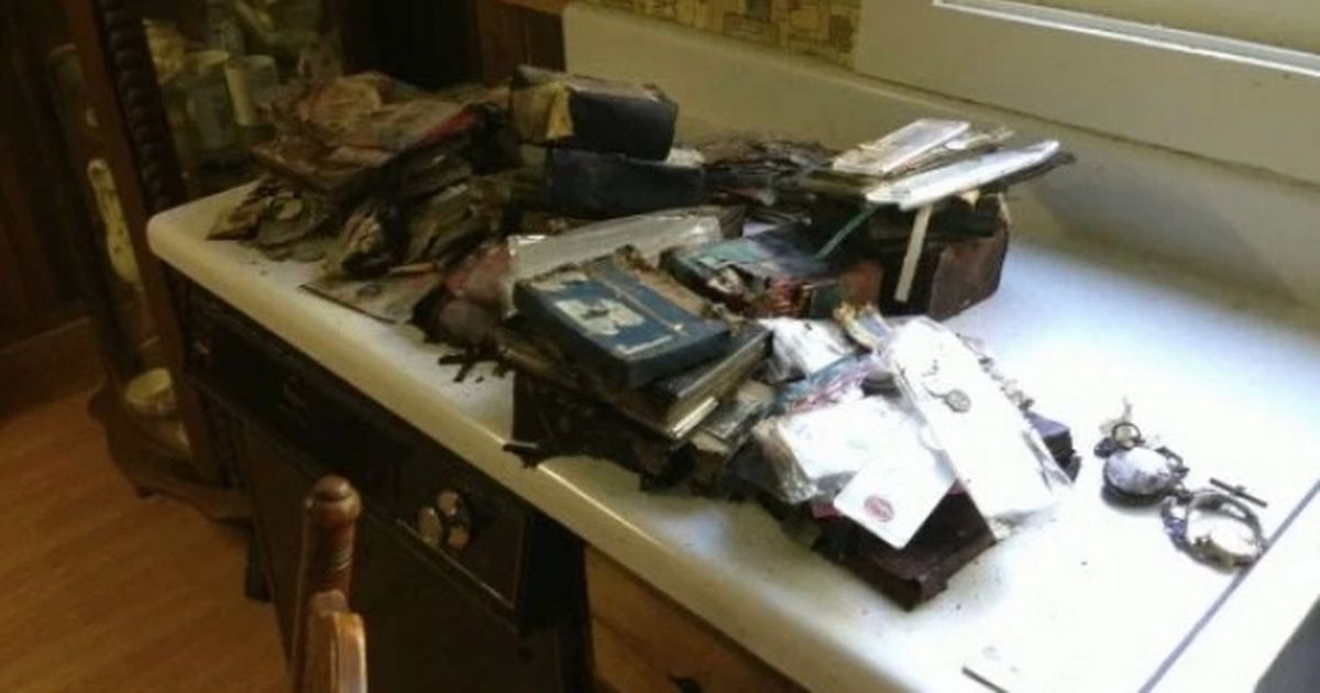 The box had suffered some water damage while it was hidden in the closet due to a pipe leak, but the valuables inside were intact.
