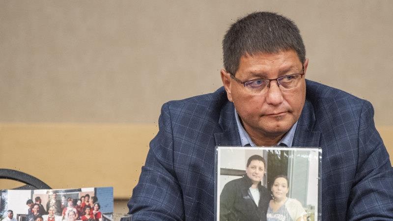 Mark Arcand, whose sister Bonnie Burns and nephew Gregory Burns were killed during a series of attacks at James Smith Cree Nation over the long weekend, speaks.Credit:AP