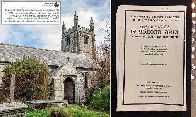 The congregation at the church had decided to read from a rarely used King James Bible and were amazed to find the leaflet from the King’s funeral before a service marking the death of his daughter, Elizabeth.