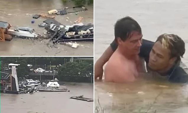 Boats swept from their moorings collide with ferry stops on the Brisbane River (pictured)
