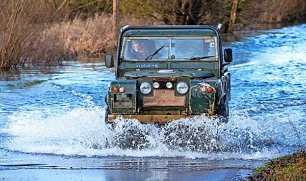 Some cars were submerged as roads and fields around the village Muchelney were swamped.