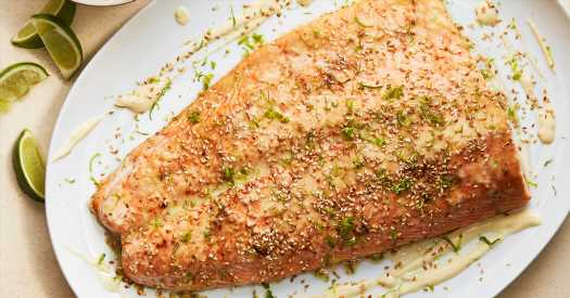 Genevieve Ko’s new recipe has a special-occasion feel but demands no extra effort. It’s the single large salmon fillet that does it, a statement piece that is simple to work with and so very delicious blanketed with miso and crème fraîche.