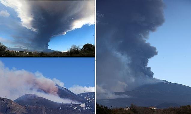 Mount Etna sent plumes of smoke and ash shooting into the air over Catania, in eastern Sicily today