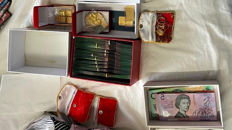 Australian Federal Police announced on Wednesday they had charged three people after several raids on Tuesday, including one at a Springvale South property that uncovered gold and $170,000 in cash hidden in a bedroom.