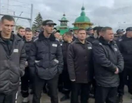 In a video shared online, hundreds of inmates at a high-security penal colony in Mordovia line up in front of a recruiter.