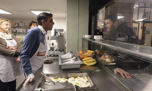 ‘Do you work in business?… No, I’m a homeless person!’ PM Rishi Sunak strikes up an awkward conversation with man as he serves up food at shelter ahead of Christmas