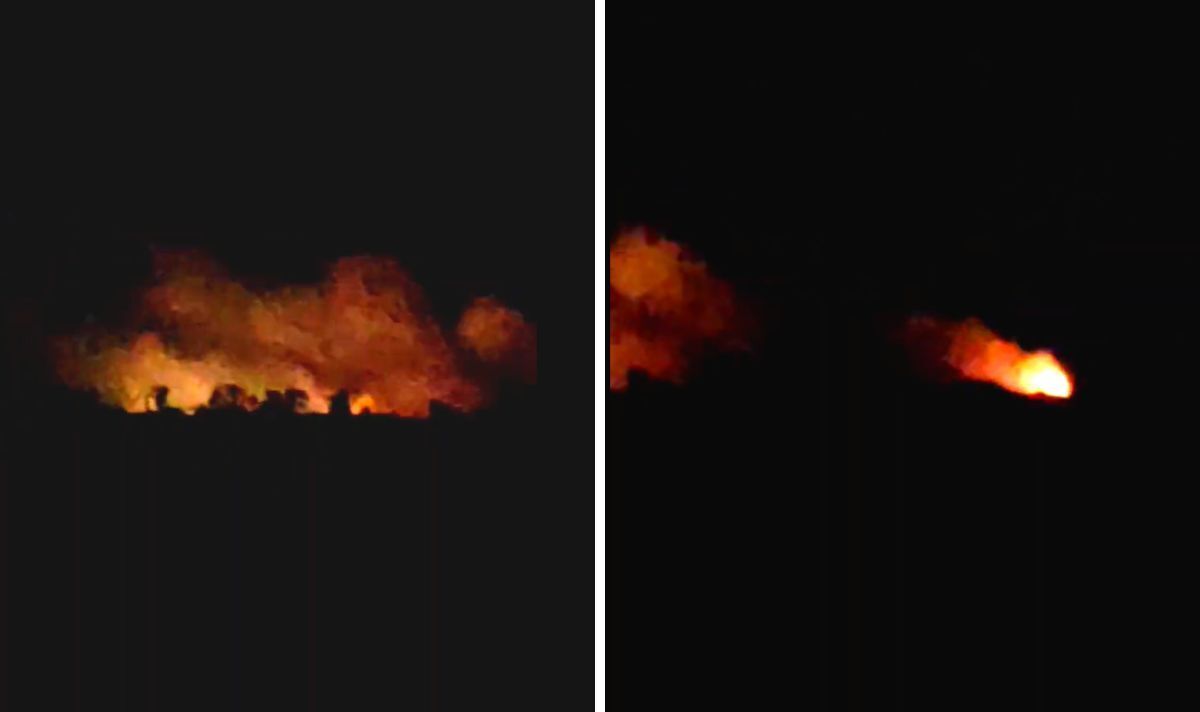 Moscow’s armed forces have suffered a heavy blow after a Russian ammunition depot was obliterated by Ukrainian forces in the Melitopol region. Video footage from the scene captured the horrifying aftermath of the attack as towering fires burned high against the pitch-black sky. In the recording, a series of continuous explosions can be heard rattling out in the distance, reported to be the result of Russian ammunition detonating in the blaze. The attack is expected to have wiped out a significant amount of Kremlin artillery as Ukraine moves to strategically weaken the Russian forces occupying southern cities.