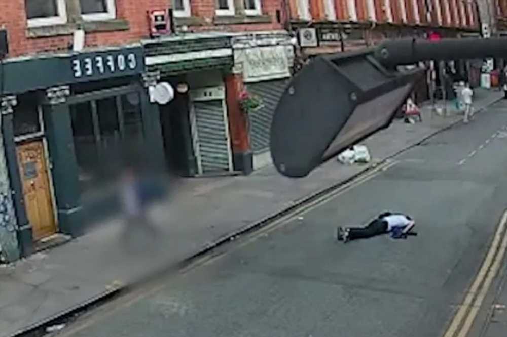Shocking footage shows the Sikh priest, 62, lying face down in the road following the brutal attack in the centre of Manchester.